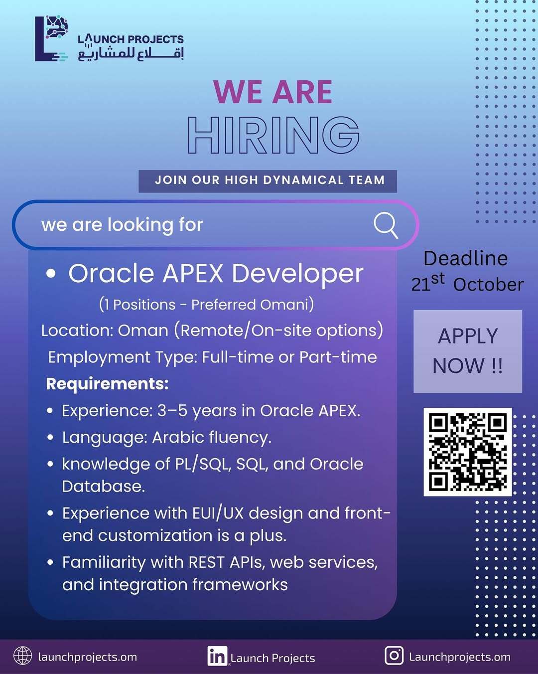 شركة إقلاع للمشاريع - وظيفة شاغرة ( مطور اوراكل إيبكس )