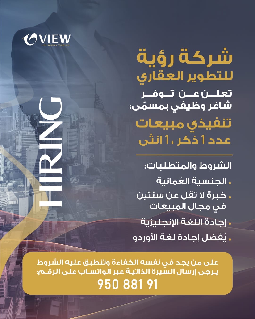 شركة رؤية للتطوير العقاري - توفر شاغر وظيفي ( تنفيذي مبيعات )
