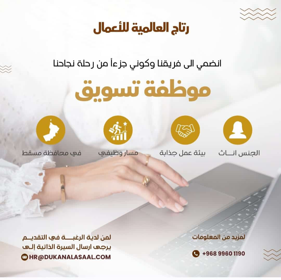 رتاج العالمية للأعمال في مسقط - وظيفة شاغرة ( موظفة تسويق )