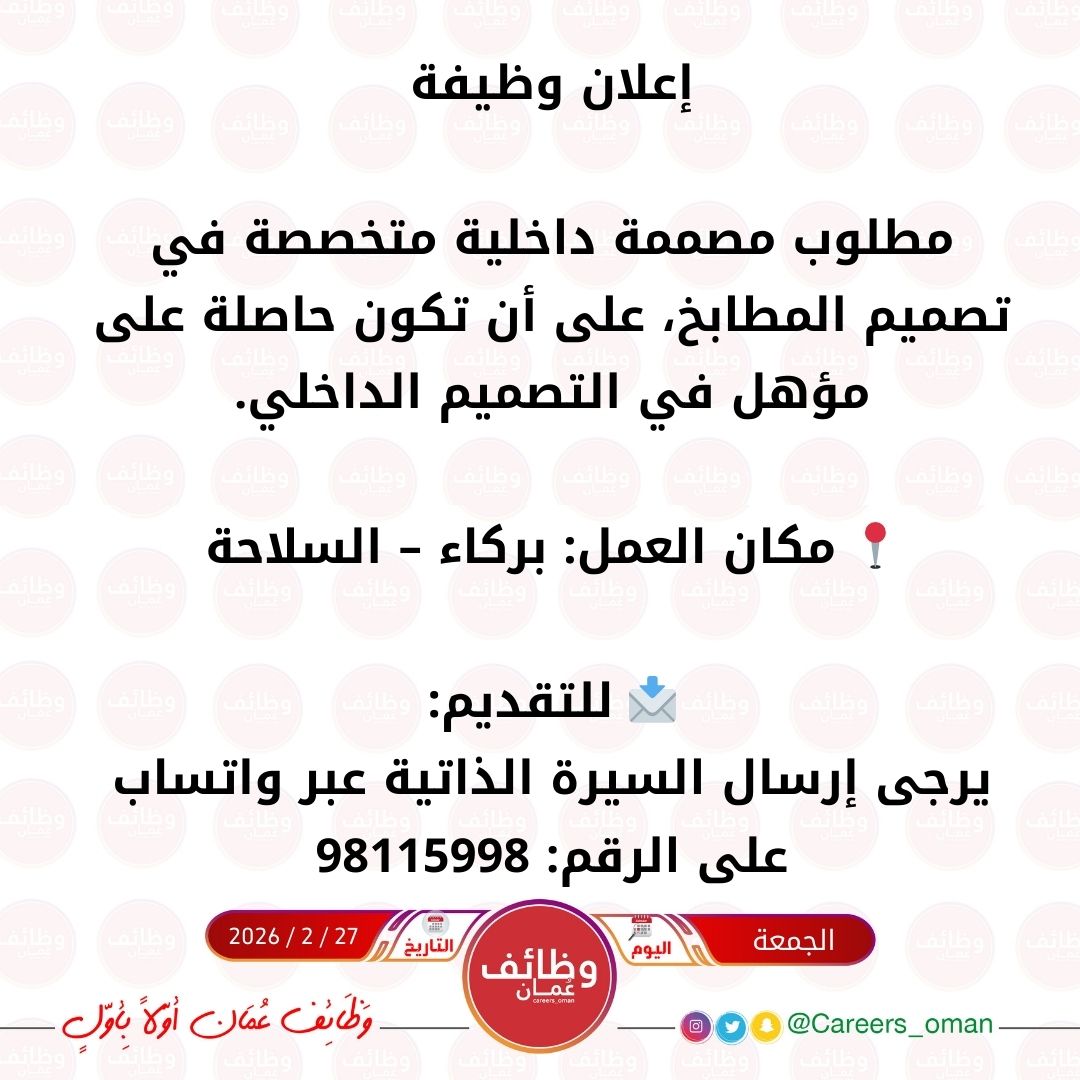 شركة متخصصة في أعمال المطابخ والأبواب في بركاء - وظيفة شاغرة ( مصممة داخلية )