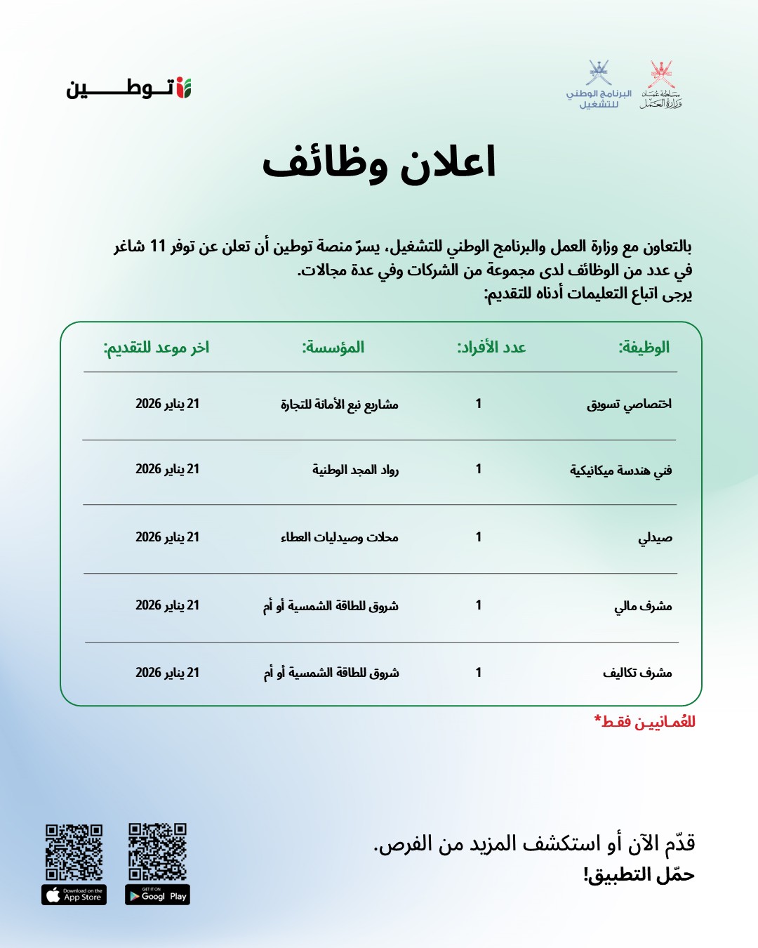 منصة توطين - توفر 11 شاغر في عدد من الوظائف لدى مجموعة من الشركات وفي عدة مجالات