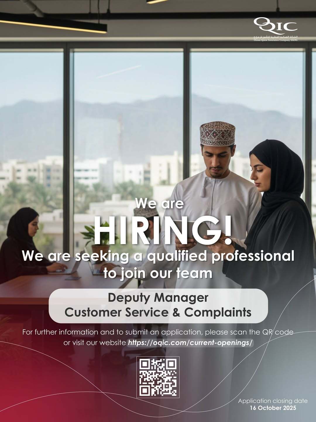 الشركة العمانية القطرية للتأمين - وظيفة شاغرة ( Deputy Manager Customer Service & Complaints )