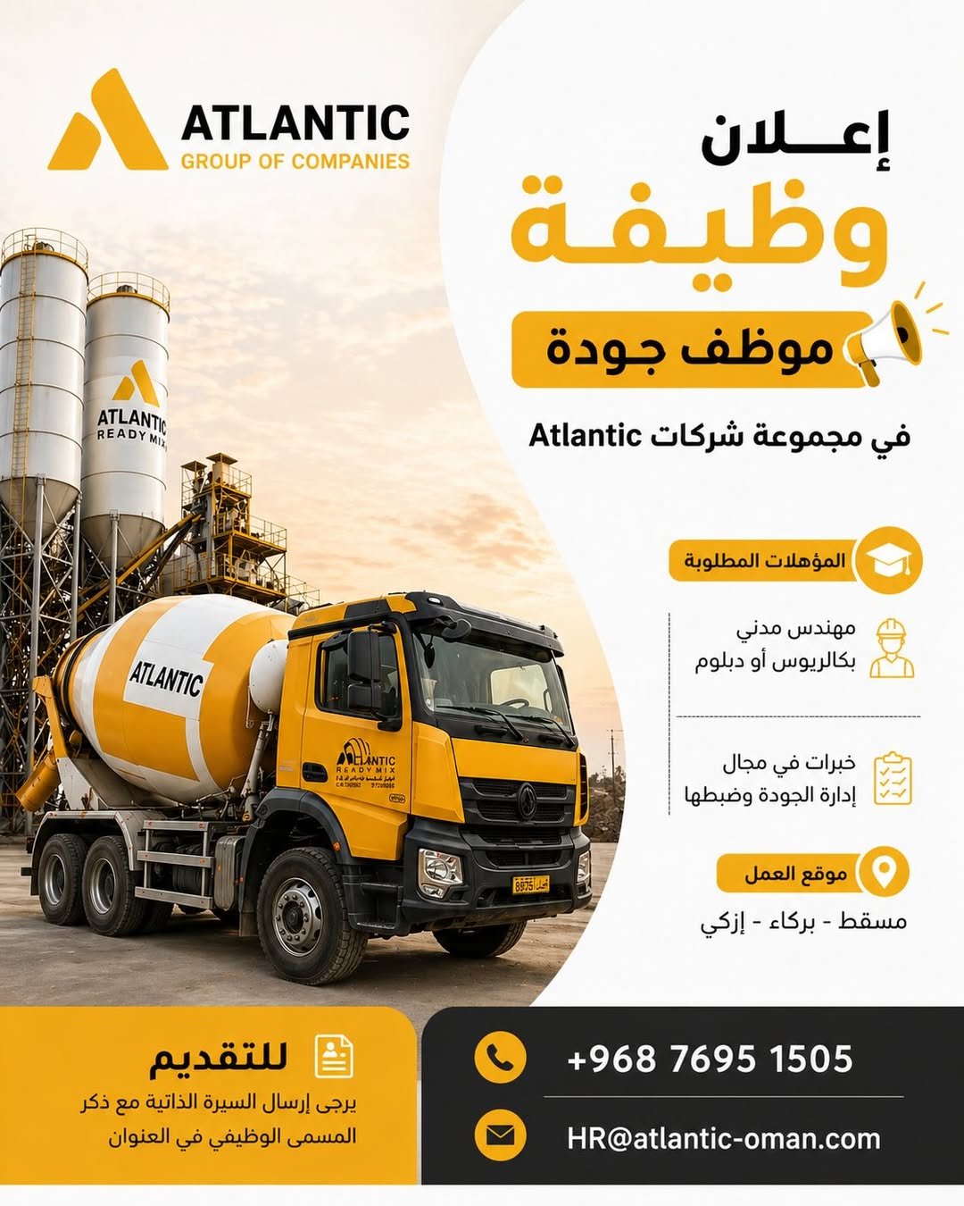 مجموعة شركات Atlantic - وظيفة شاغرة ( مهندس مدني )