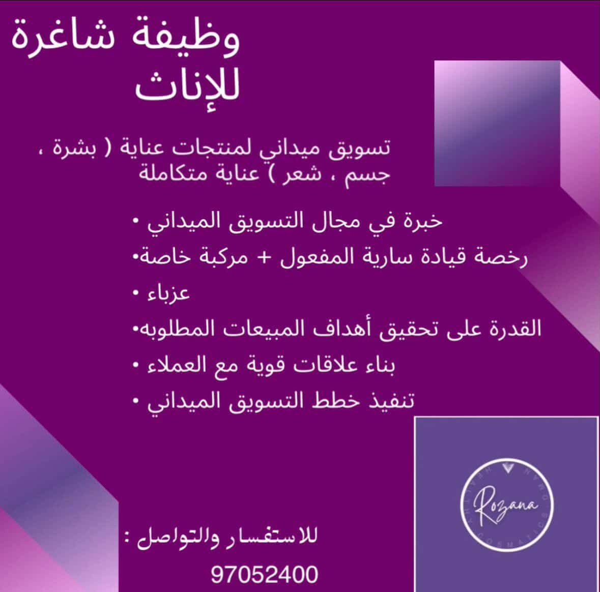 شركة رائدة في مسقط - وظيفة شاغرة ( تسويق ميداني لمنتجات عناية )