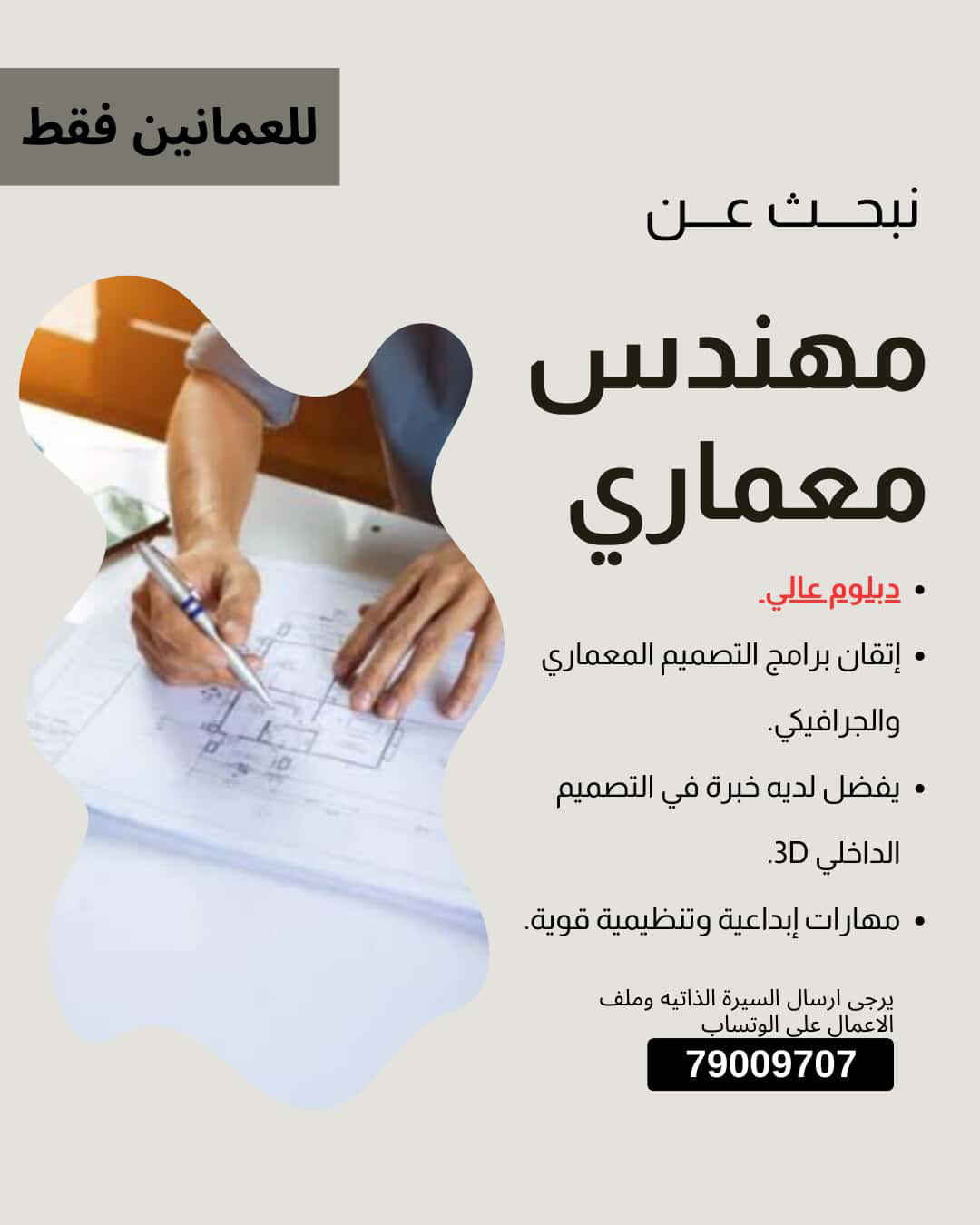 احدى الشركات الرائدة - وظيفة شاغرة ( مهندس معماري )