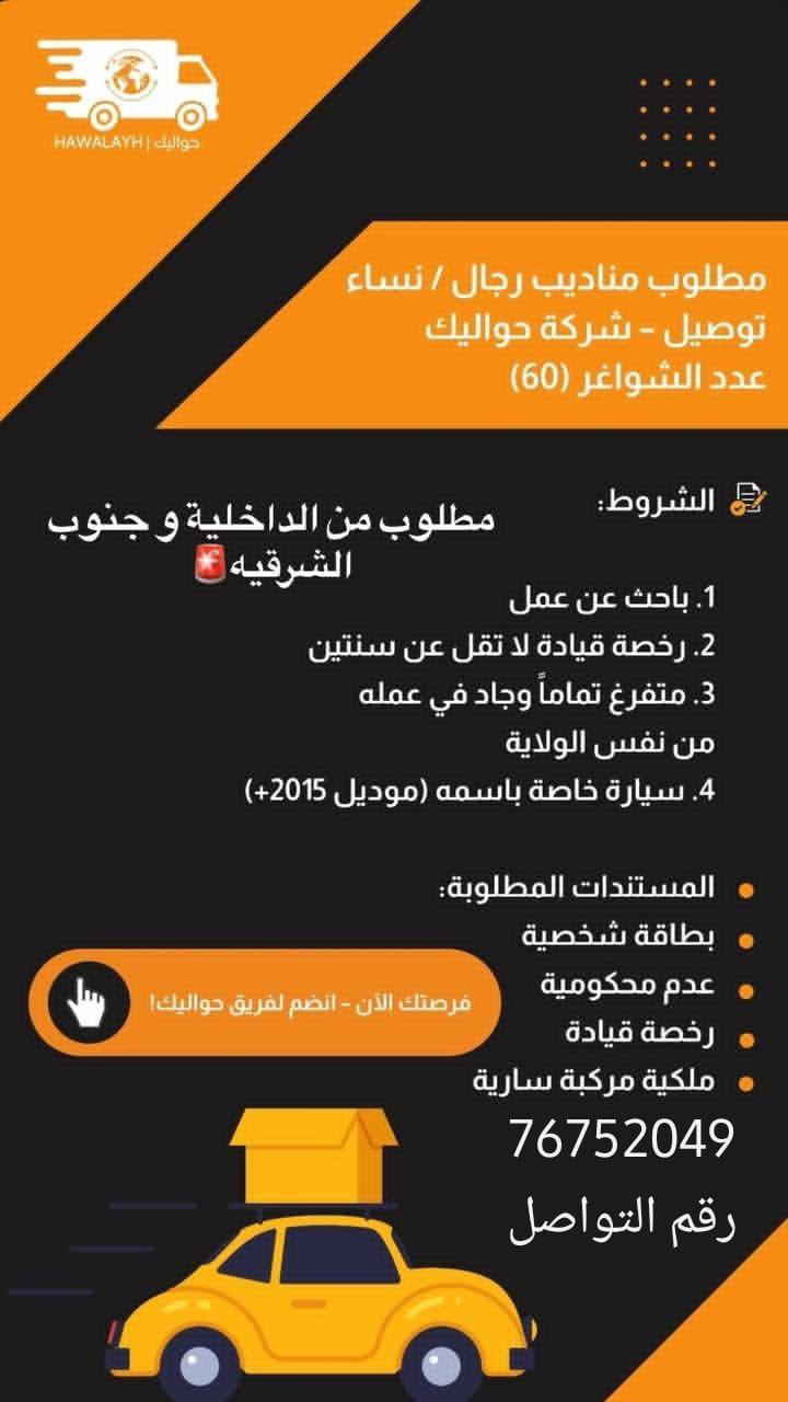 شركة حواليك للتوصيل - فرص وظيفية ( مناديب توصيل + سائقي باصات )