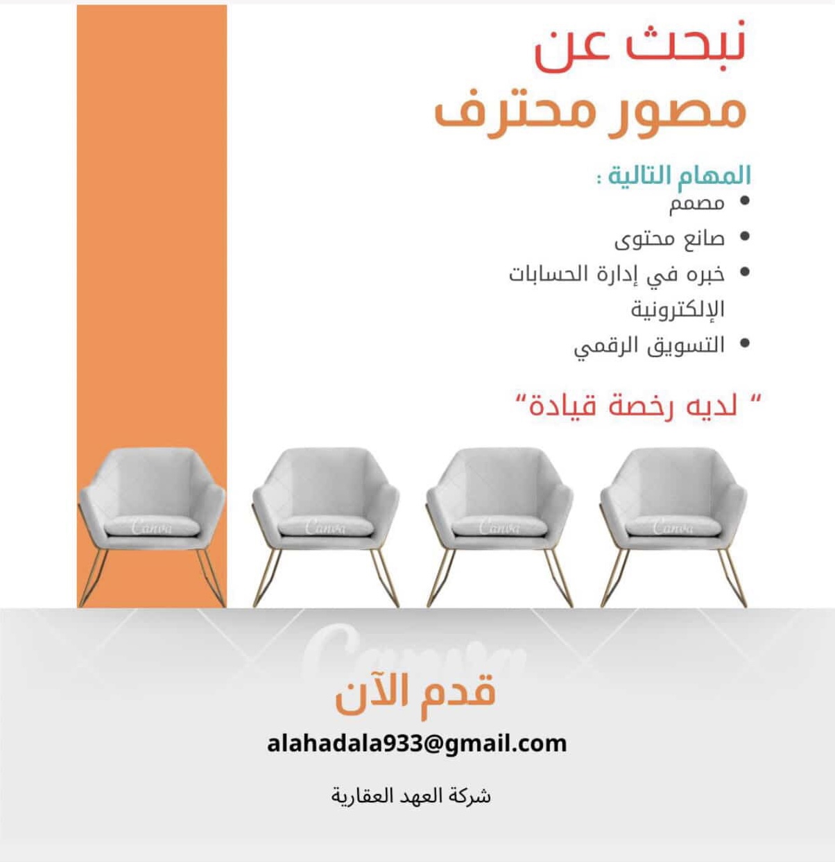 شركة العهد العقارية - وظيفة شاغرة ( مصور محترف )