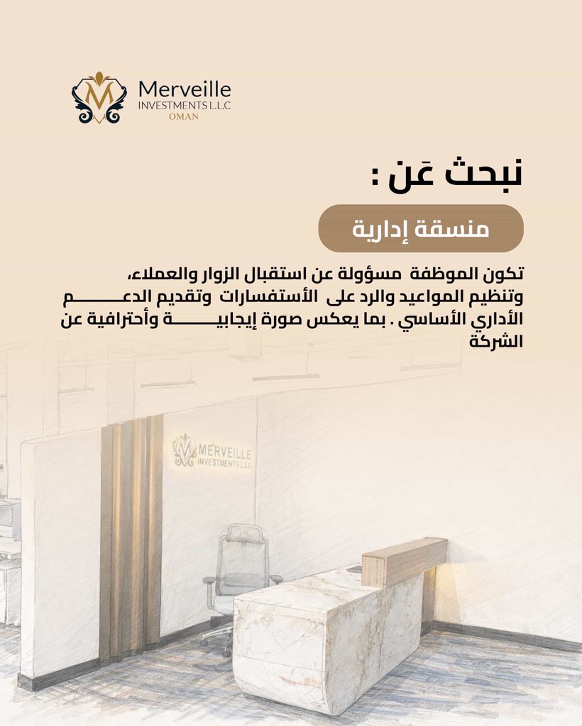 شركة Merveille - وظيفة شاغرة ( منسقة إدارية )