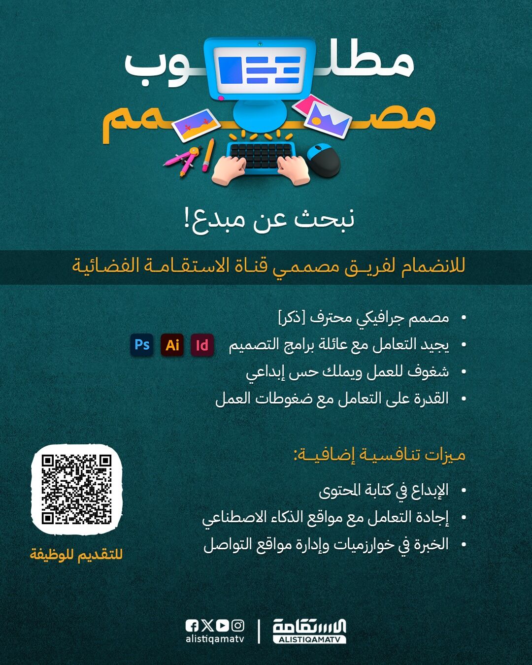 قناة الإستقامة الفضائية - وظيفة شاغرة ( مصمم جرافيك )