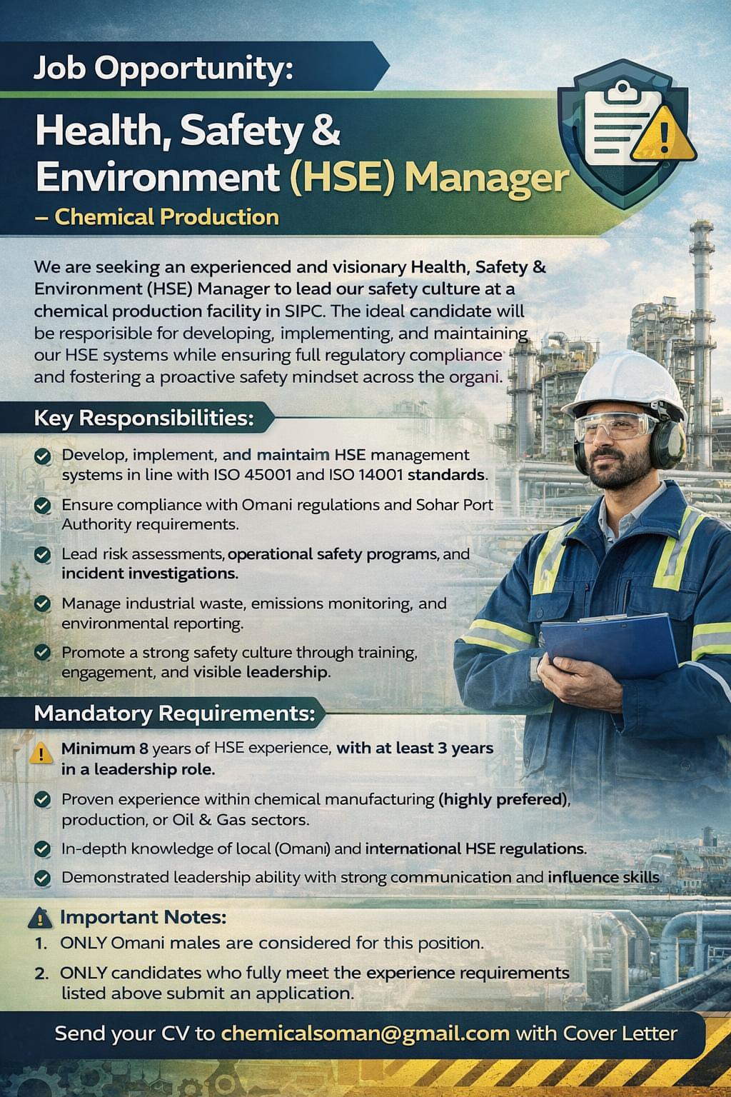احدى الشركات الرائدة - وظيفة شاغرة ( HSE Manager )