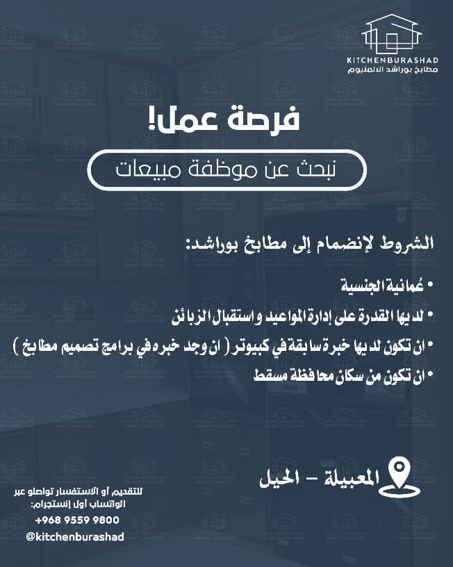 مطابخ بوراشد للألمنيوم في الحيل - وظيفة شاغرة ( موظفة مبيعات )