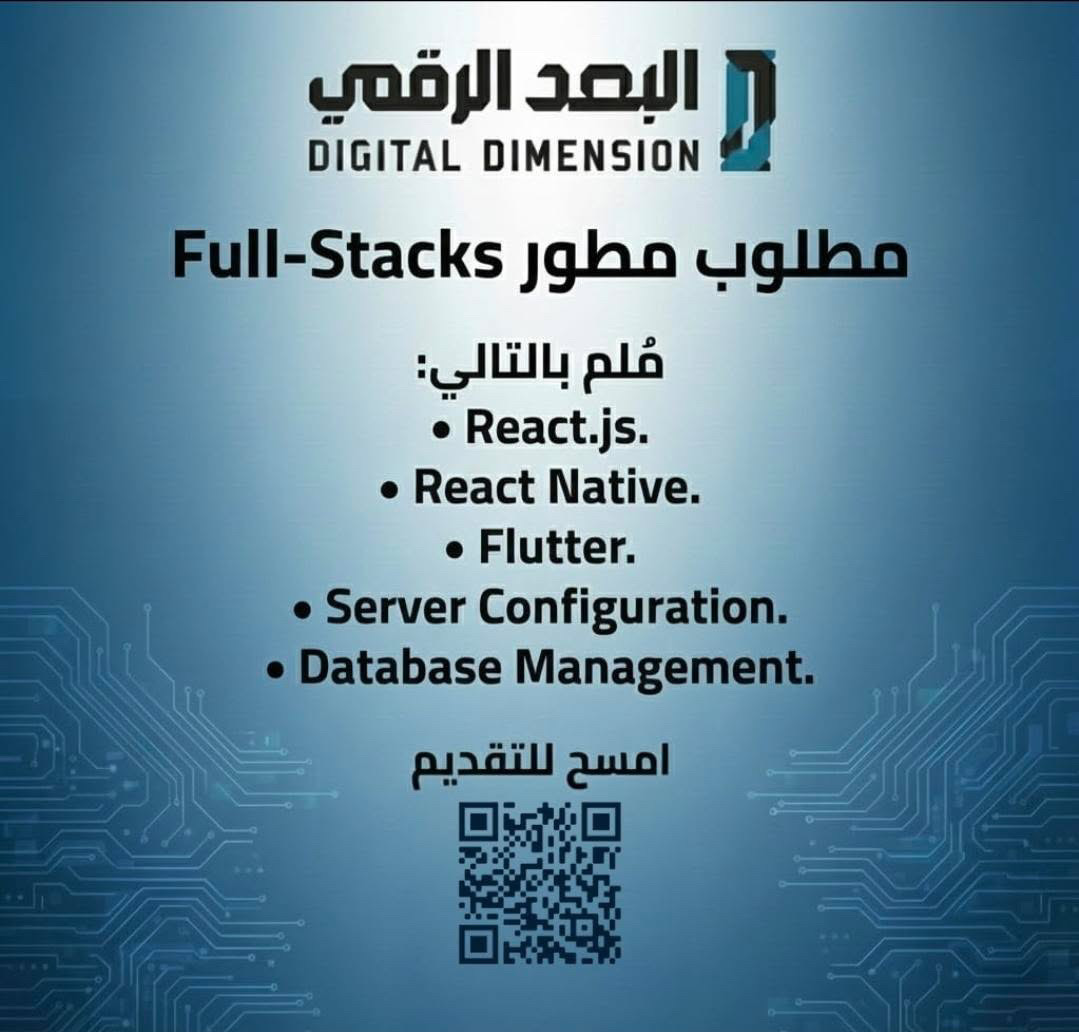شركة البعد الرقمي - وظيفة شاغرة ( مطور Full-Stacks )