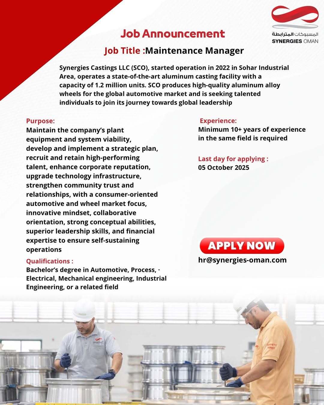 المسبوكات المترابطة - وظيفة شاغرة ( Maintenance Manager )