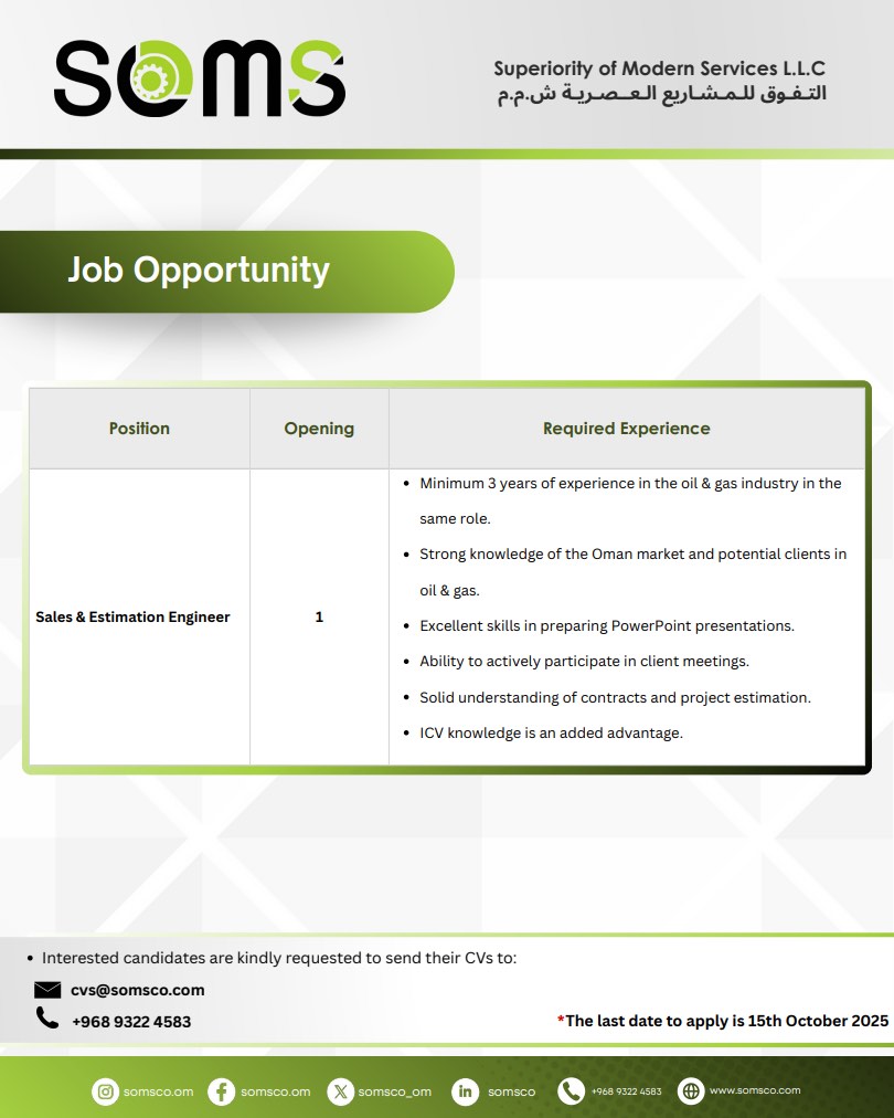 شركة التفوق للمشاريع العصرية - وظيفة شاغرة ( Sales & Estimation Engineer )