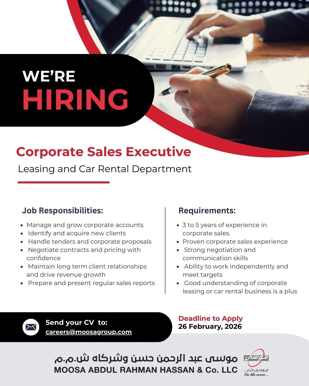 شركة موسى عبدالرحمن حسن وشركاه - وظيفة شاغرة ( Corporate Sales Executive )