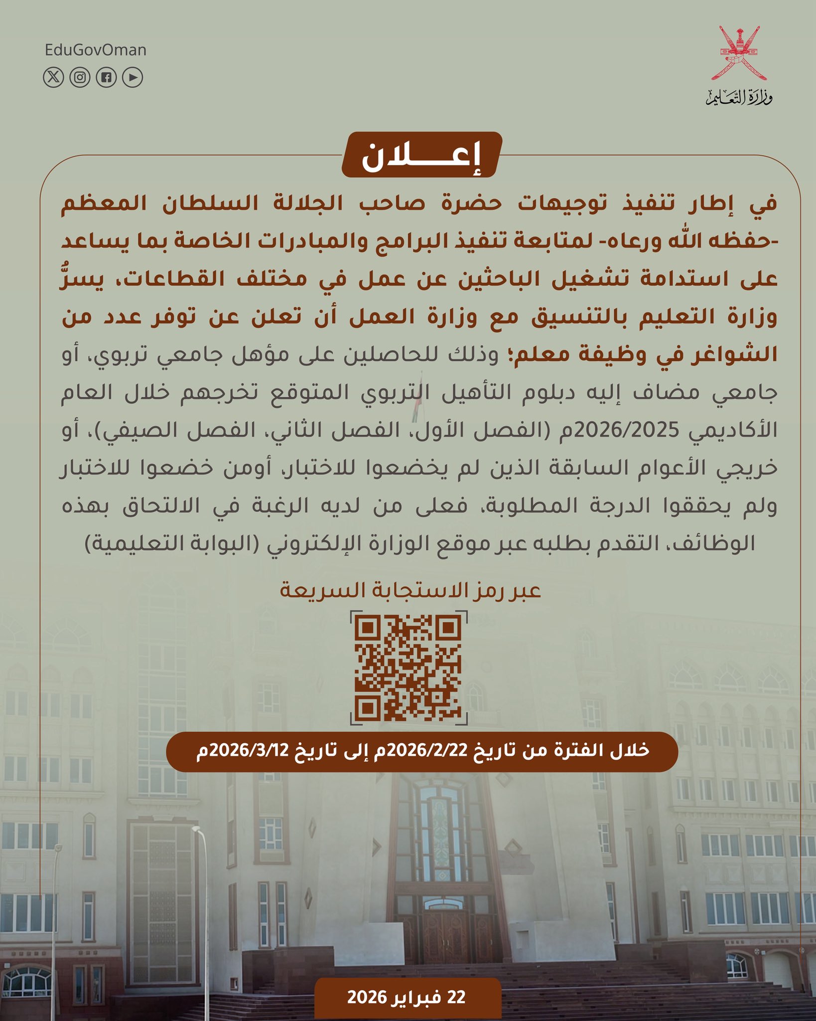 وزارة التعليم بالتنسيق مع وزارة العمل - تعلن عن توفر عدد من الشواغر في وظيفة معلم