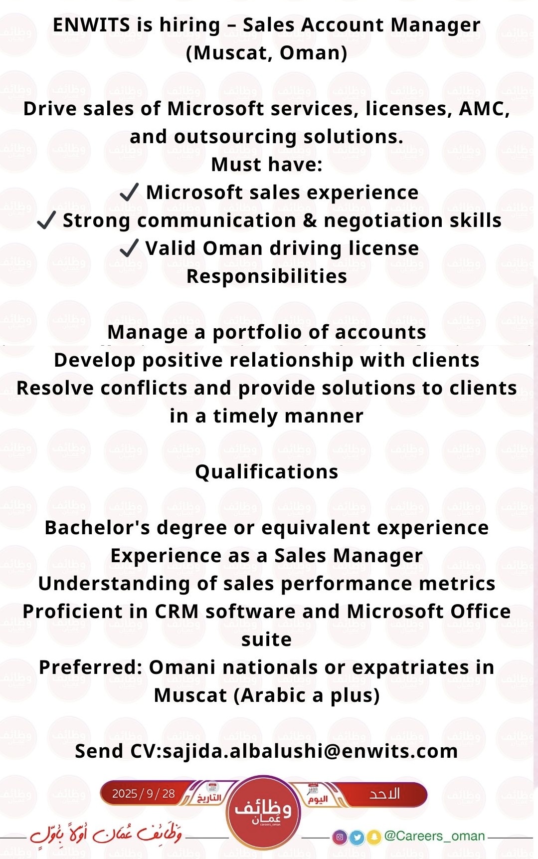 شركة ENWITS في مسقط - وظيفة شاغرة ( Sales Account Manager )