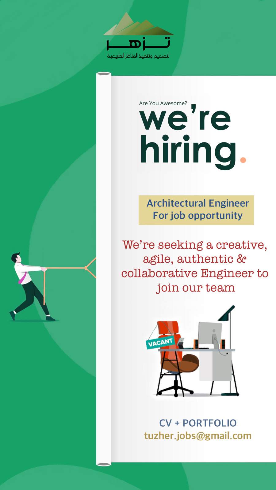 شركة تزهر لتصميم وتنفيذ المناظر الطبيعية - وظيفة شاغرة ( Architectural Engineer )