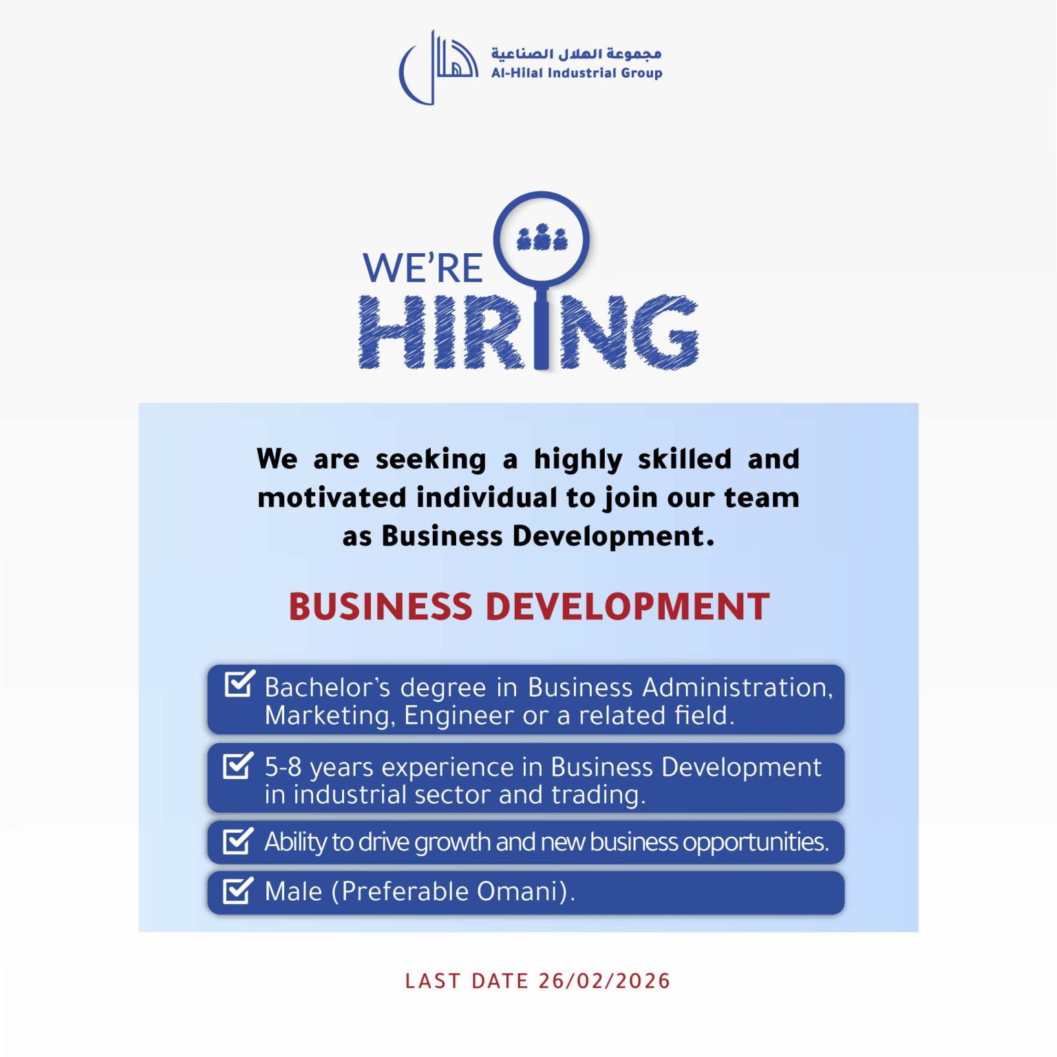 مجموعة الهلال الصناعية - وظيفة شاغرة ( BUSINESS DEVELOPMENT )