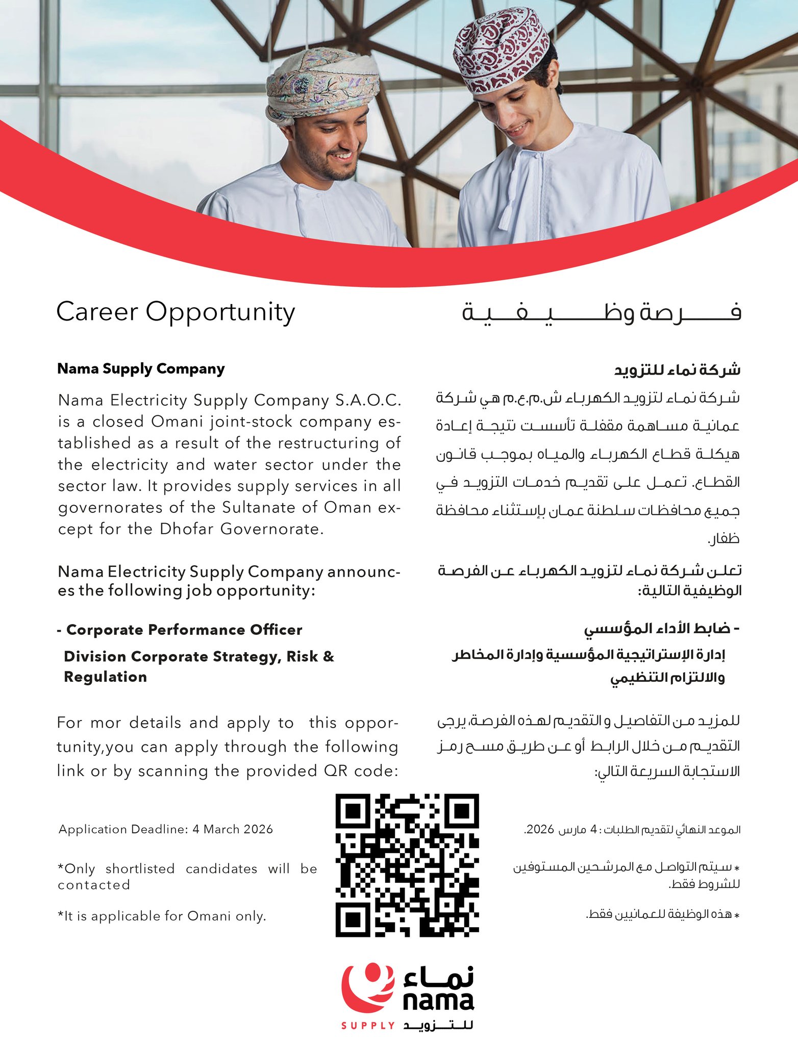 شركة نماء للتزويد - وظيفة شاغرة ( ضابط الأداء المؤسسي )