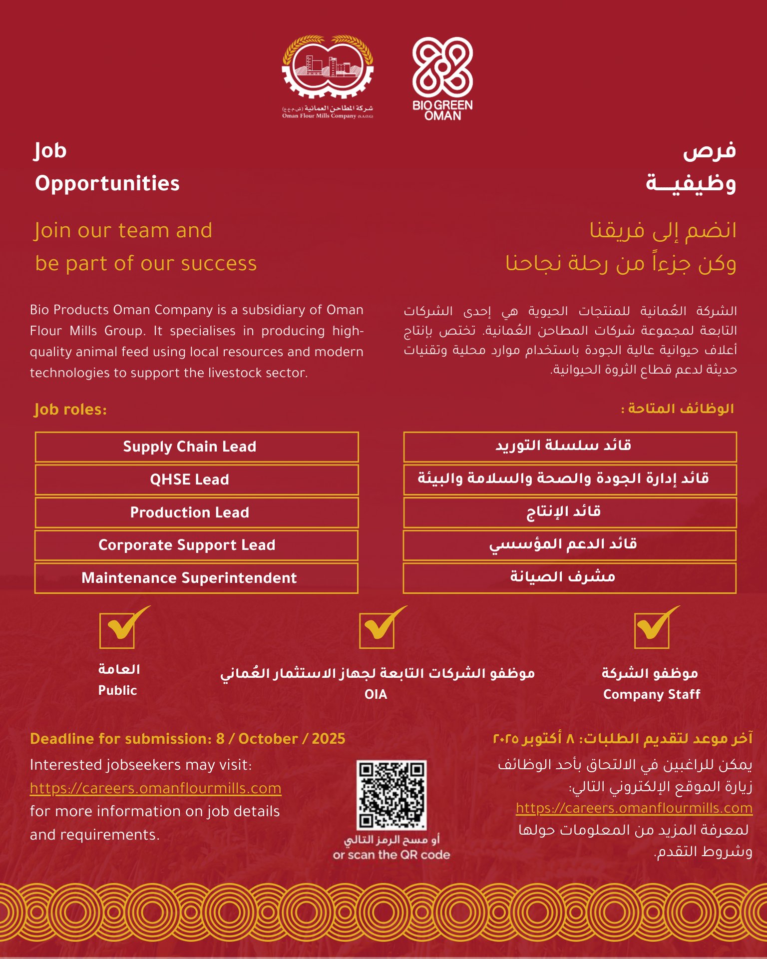 الشركة العُمانية للمنتجات الحيوية - 5 وظائف شاغرة