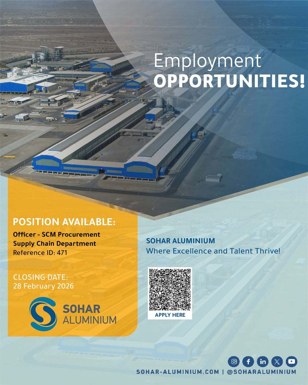 شركة صحار ألمنيوم - وظيفة شاغرة ( Officer - SCM Procurement Supply Chain Department )