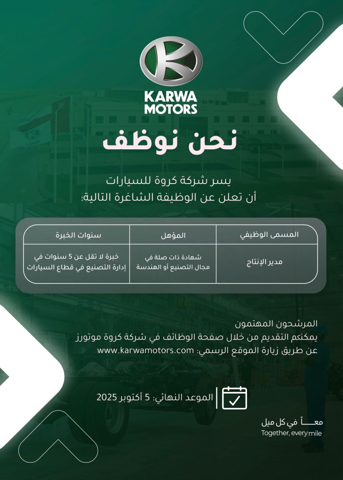 شركة كروة للسيارات - وظيفة شاغرة ( مدير الإنتاج )