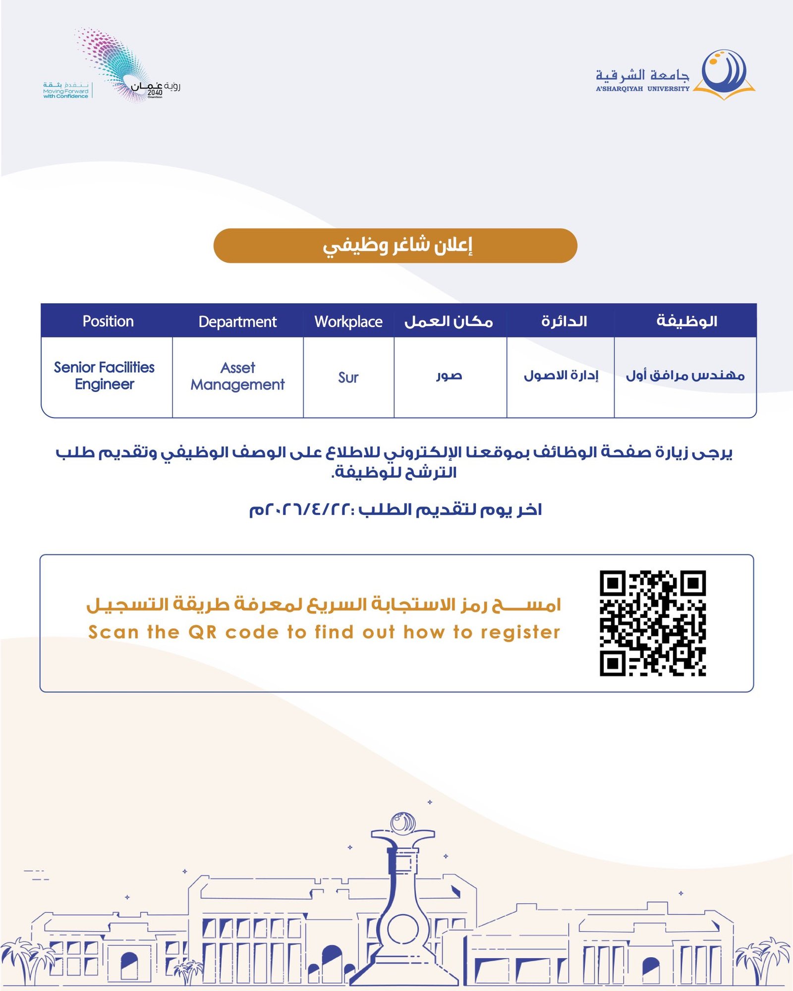 جامعة الشرقية - وظيفة شاغرة ( مهندس مرافق أول )
