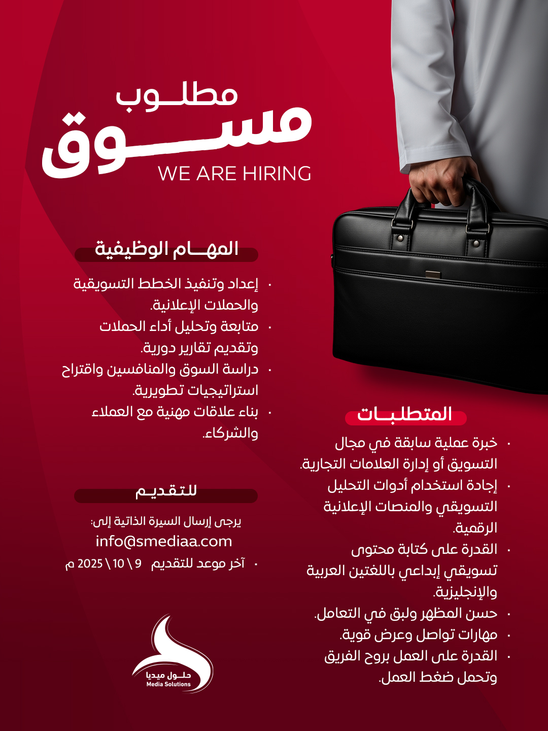 شركة حلول ميديا - وظيفة شاغرة ( مسوق )