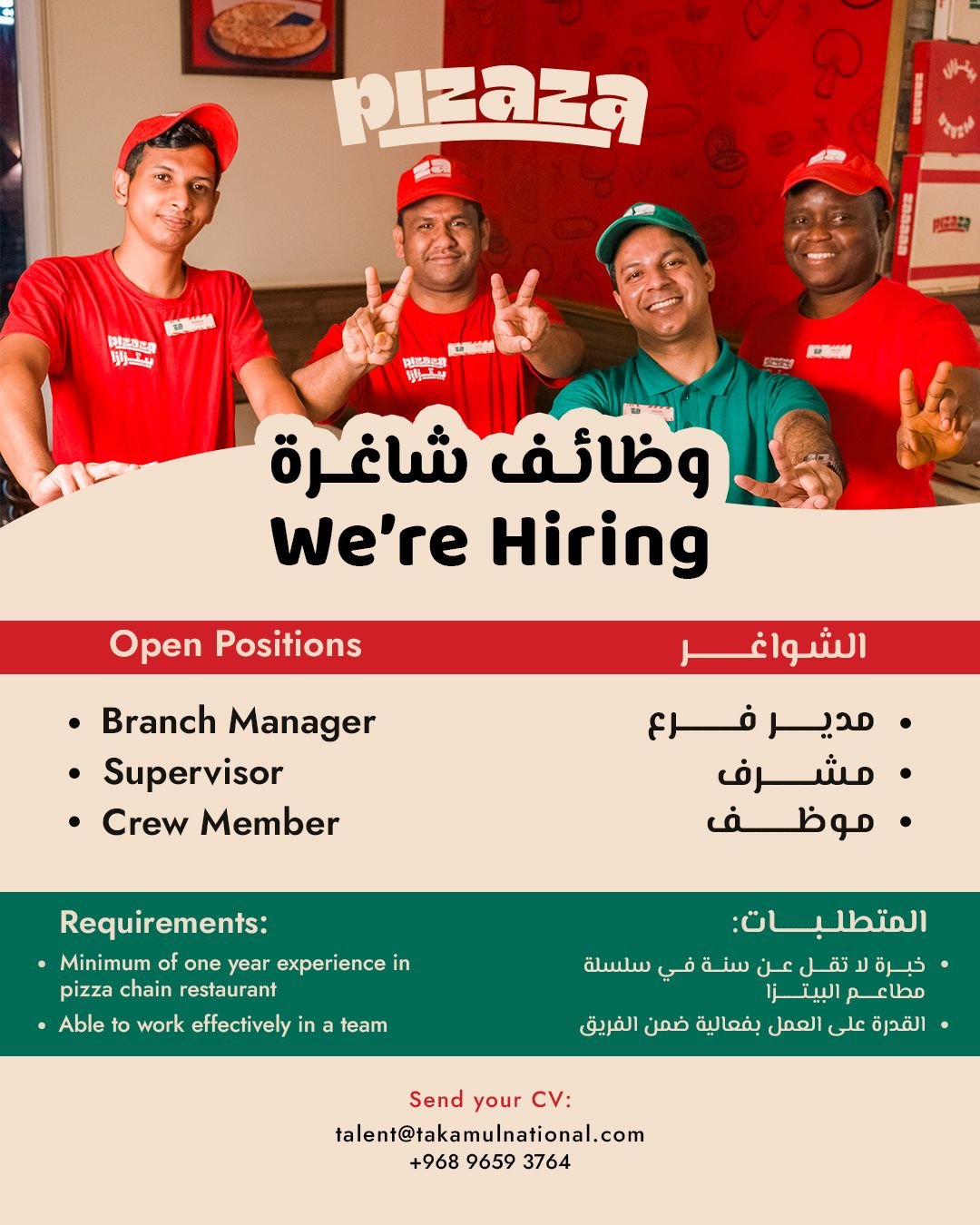 شركة التكامل الوطنية في مسقط - توفر وظائف شاغرة في pizza
