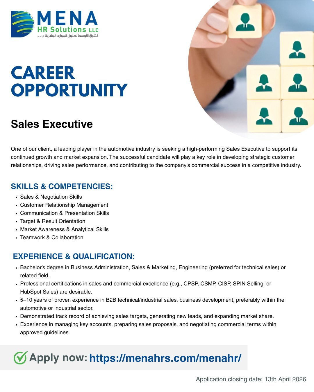 الشرق الأوسط لحلول الموارد البشرية - وظيفة شاغرة ( Sales Executive )