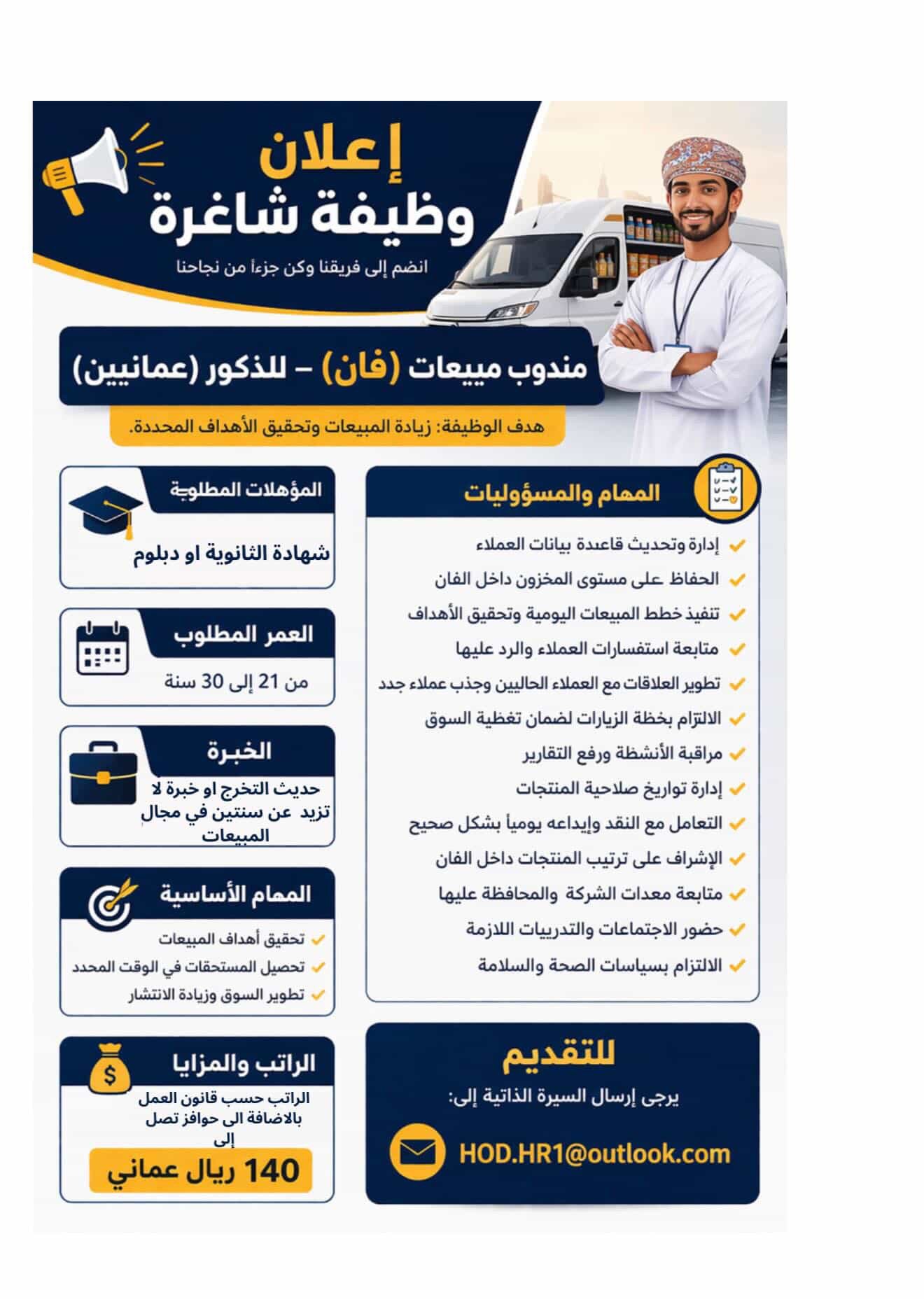 مشركة رائدة في مجال بيع المواد الاستهلاكية في مسقط - توفر وظيفة شاغرة ( مندوب مبيعات )