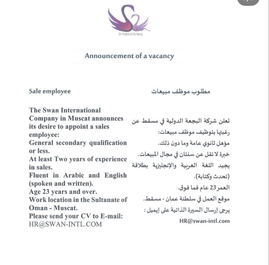 البجعة الدولية في مسقط - توفر وظائف شاغرة