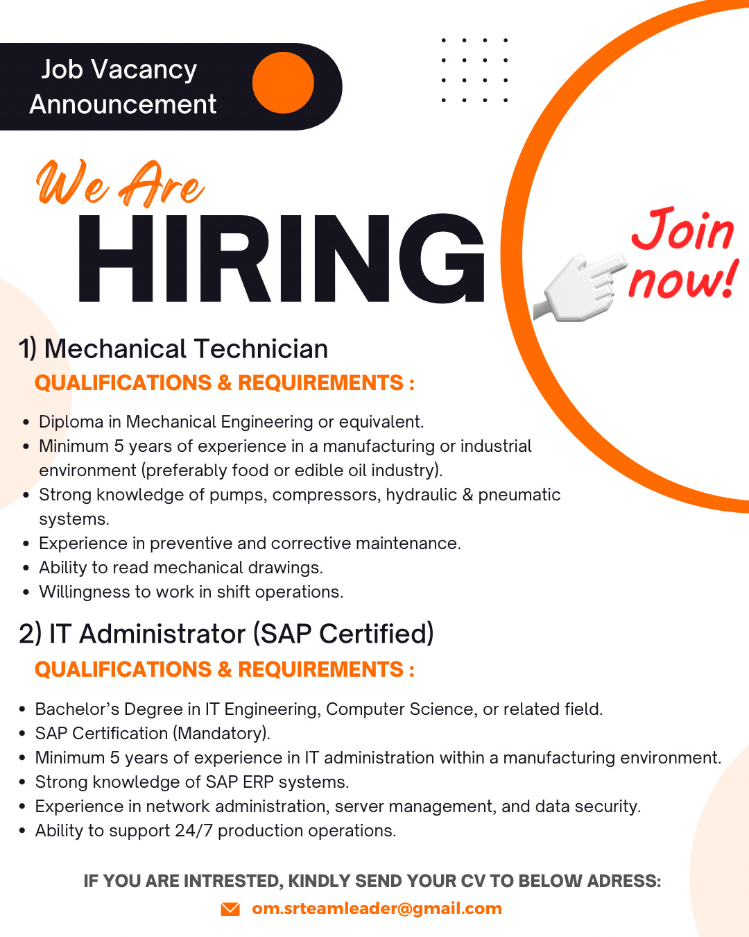 شركة رائدة في مسقط - وظيفتين شاغرتين