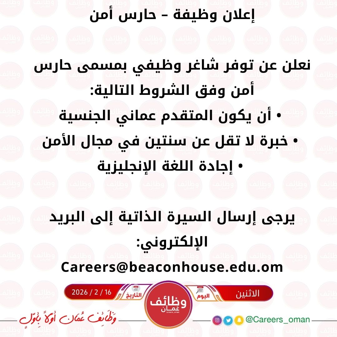 مدرسة عالمية في مسقط - وظيفة شاغرة ( حارس أمن )