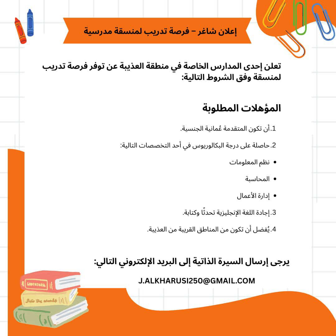 إحدى المدارس الخاصة في العذيبة - توفر فرصة تدريب منسقة