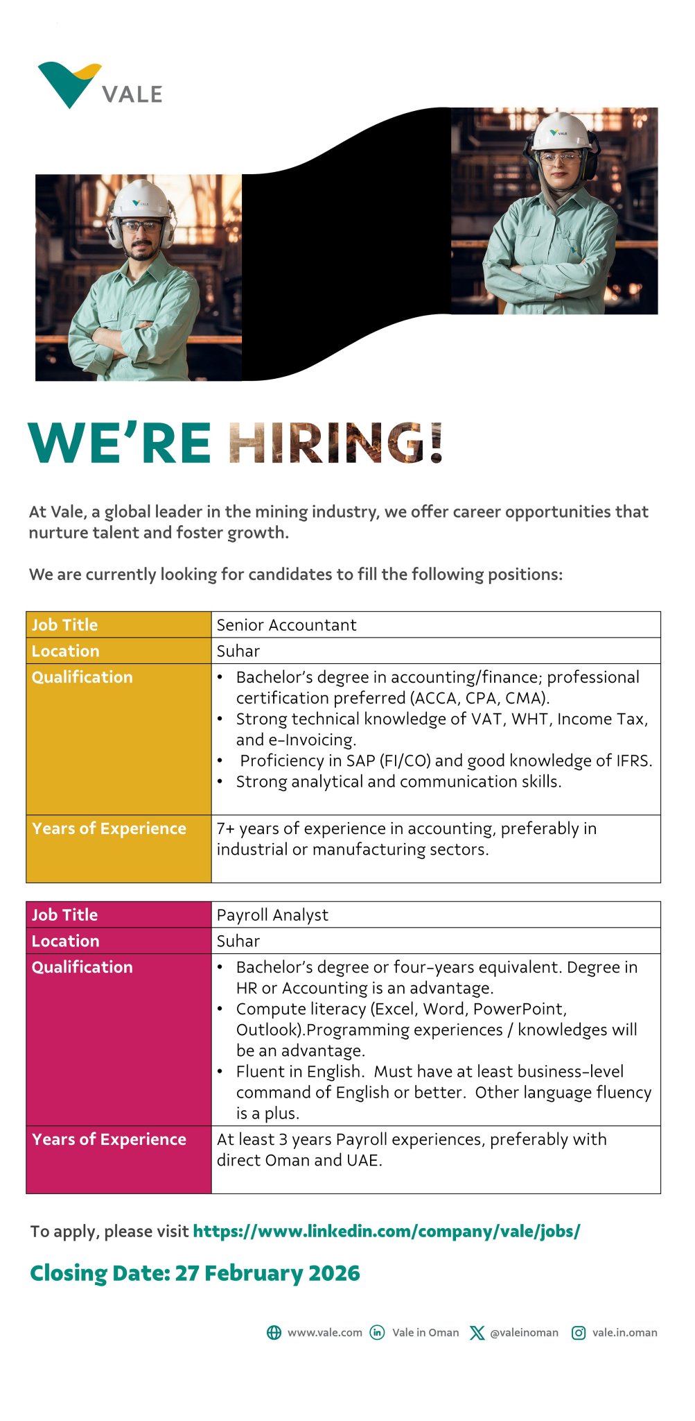 شركة فالي - توفر فرص وظيفية