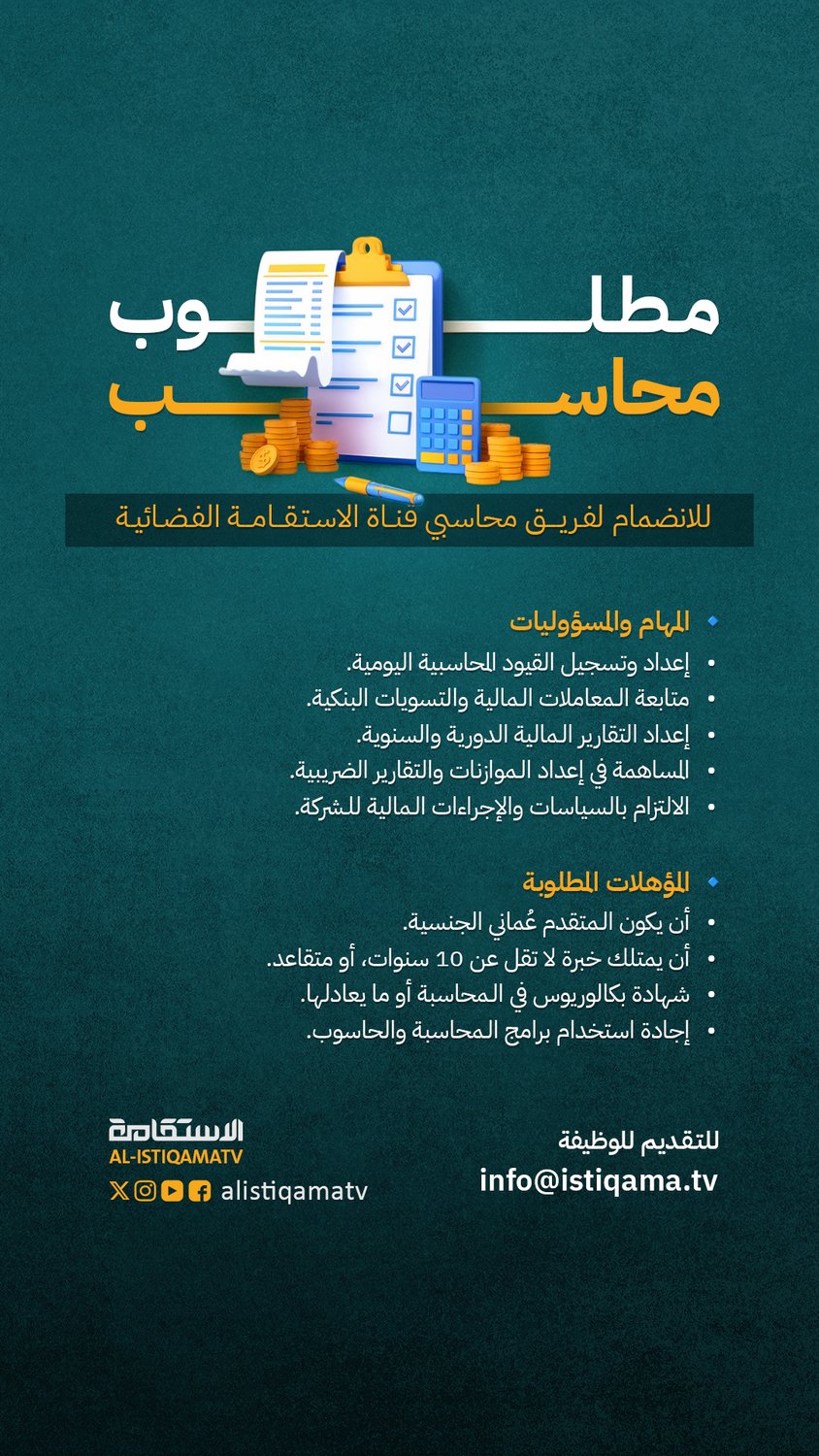 قناة الاستقامة الفضائية - وظيفة شاغرة ( محاسب )
