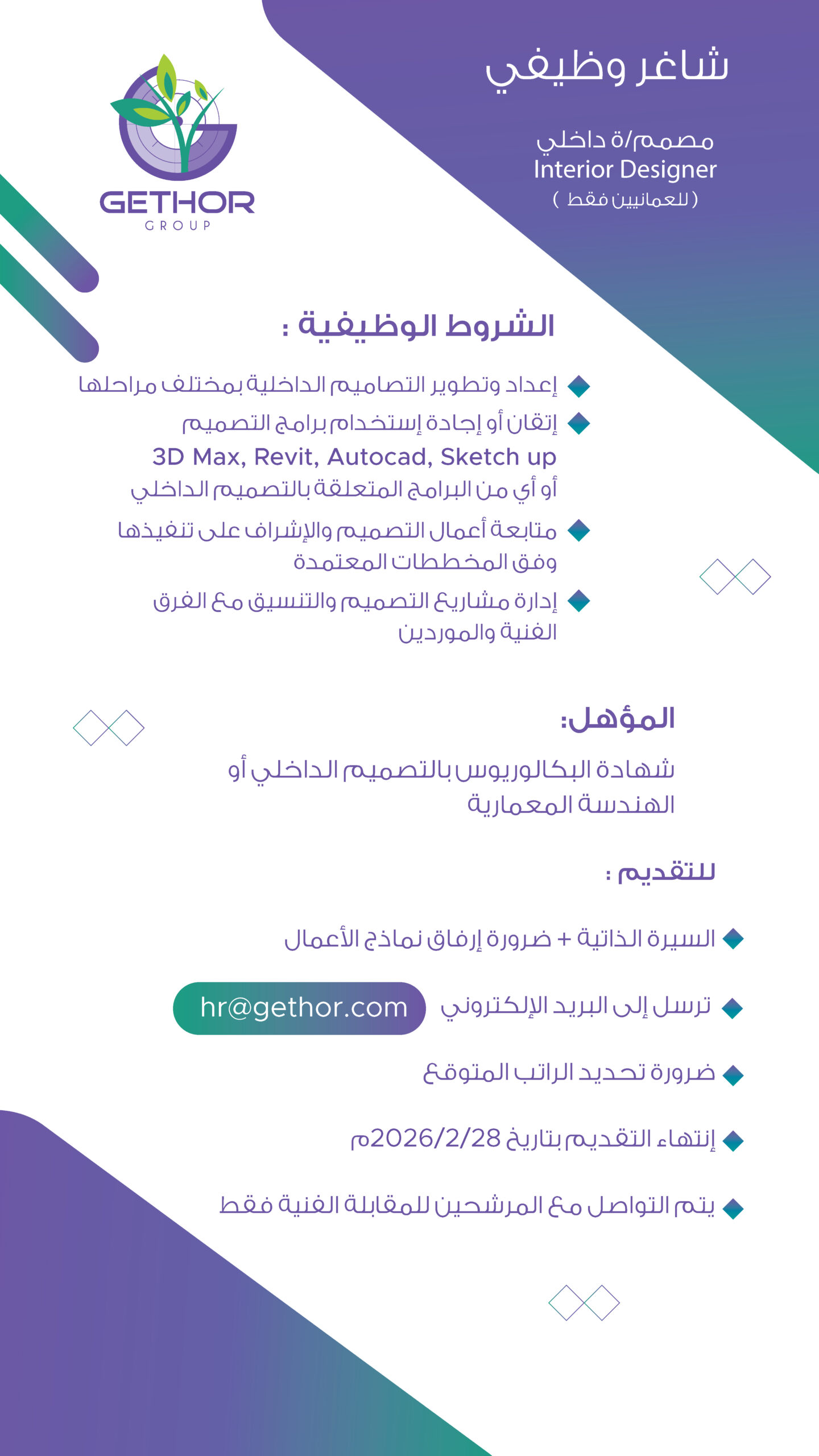 مجموعة جذور - وظيفة شاغرة ( مصمم/ة داخلي )