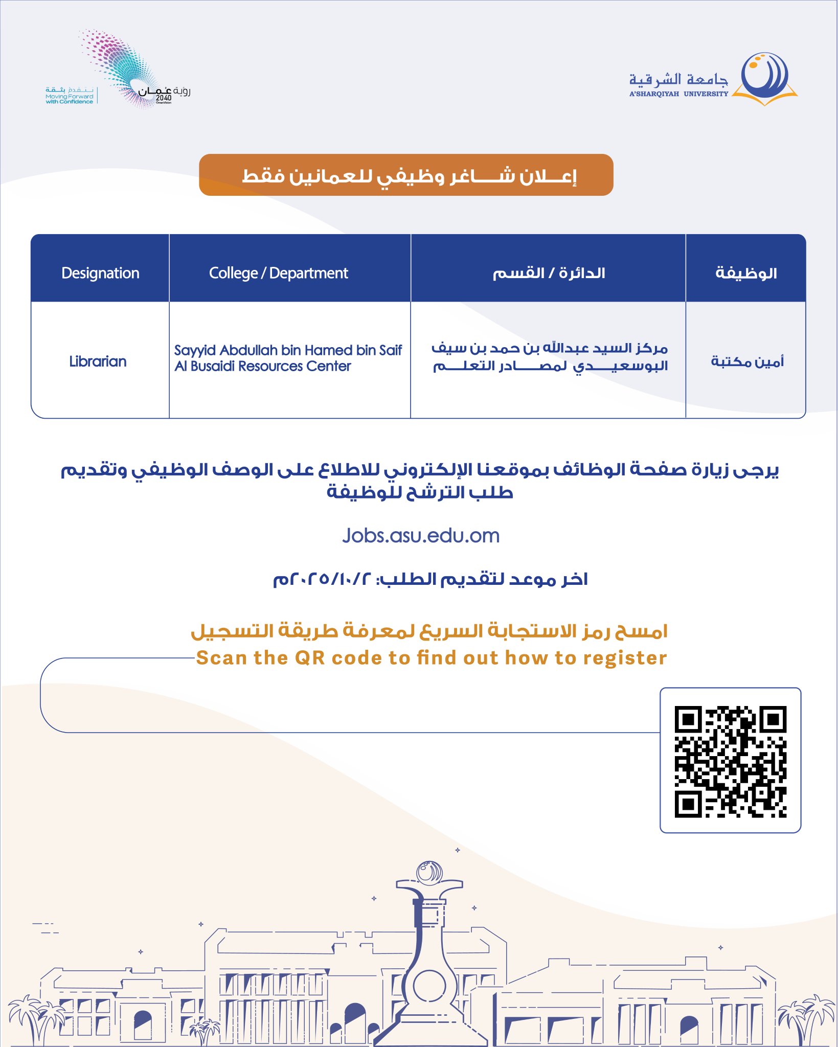 جامعة الشرقية - وظيفة شاغرة ( امين مكتبة )