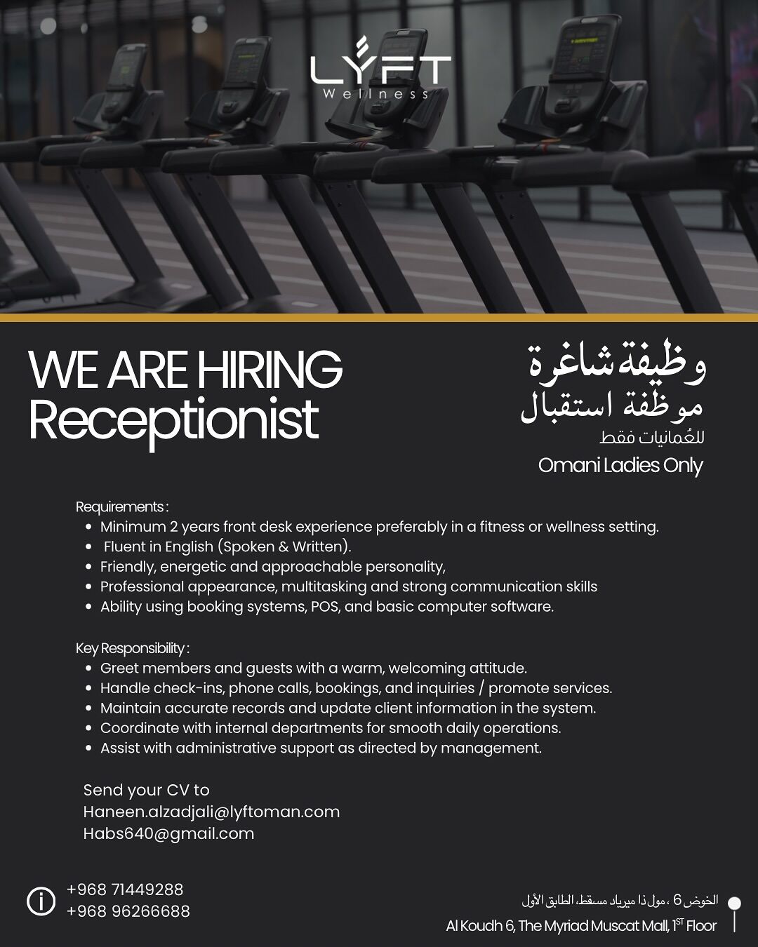 صالة رياضية نسائية LYFT Wellness - وظائف شاغرة ( باريستا + مُدربة دراجات ثابته + موظفة استقبال )