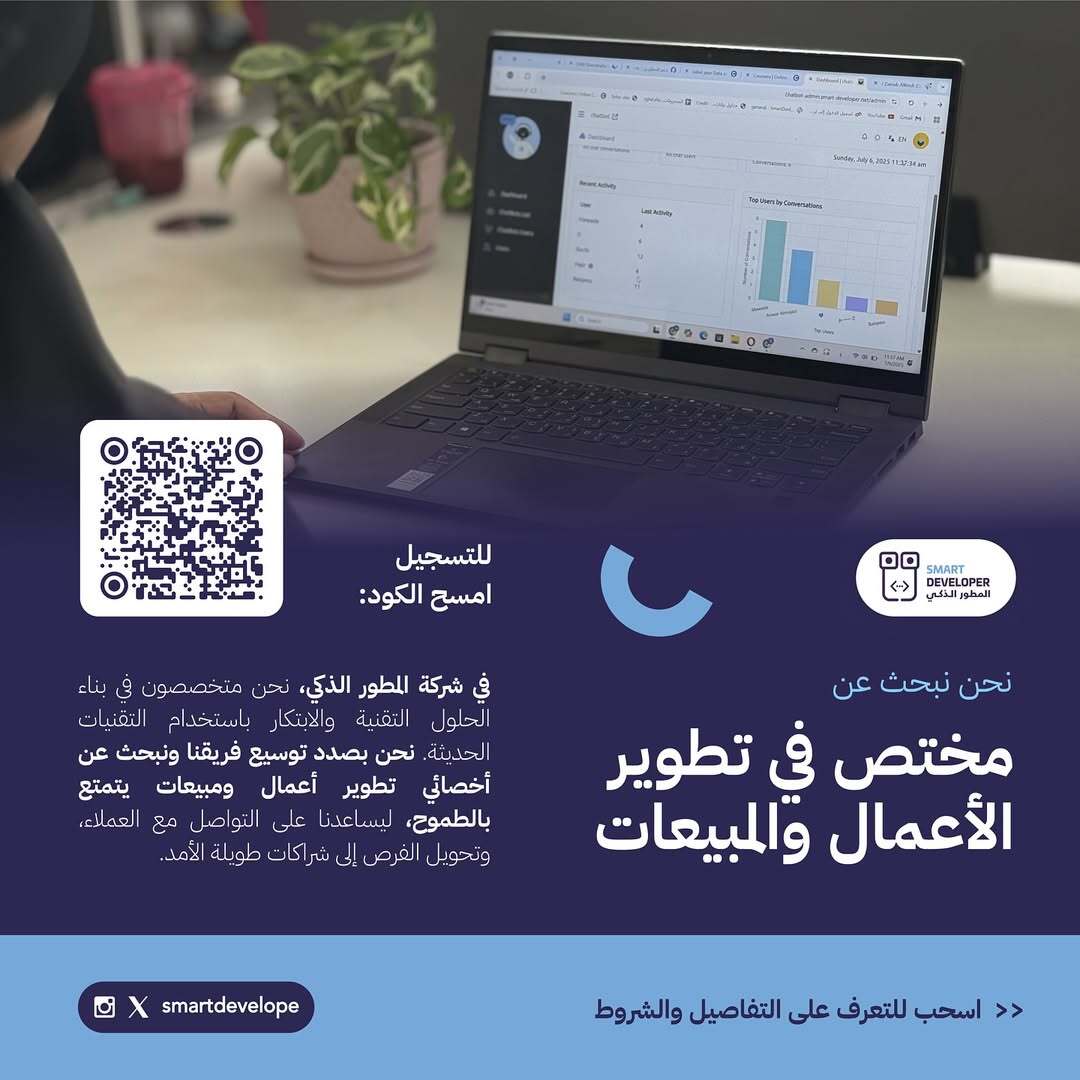 شركة المطور الذكي - وظيفة شاغرة ( مختص في تطوير الأعمال والمبيعات )