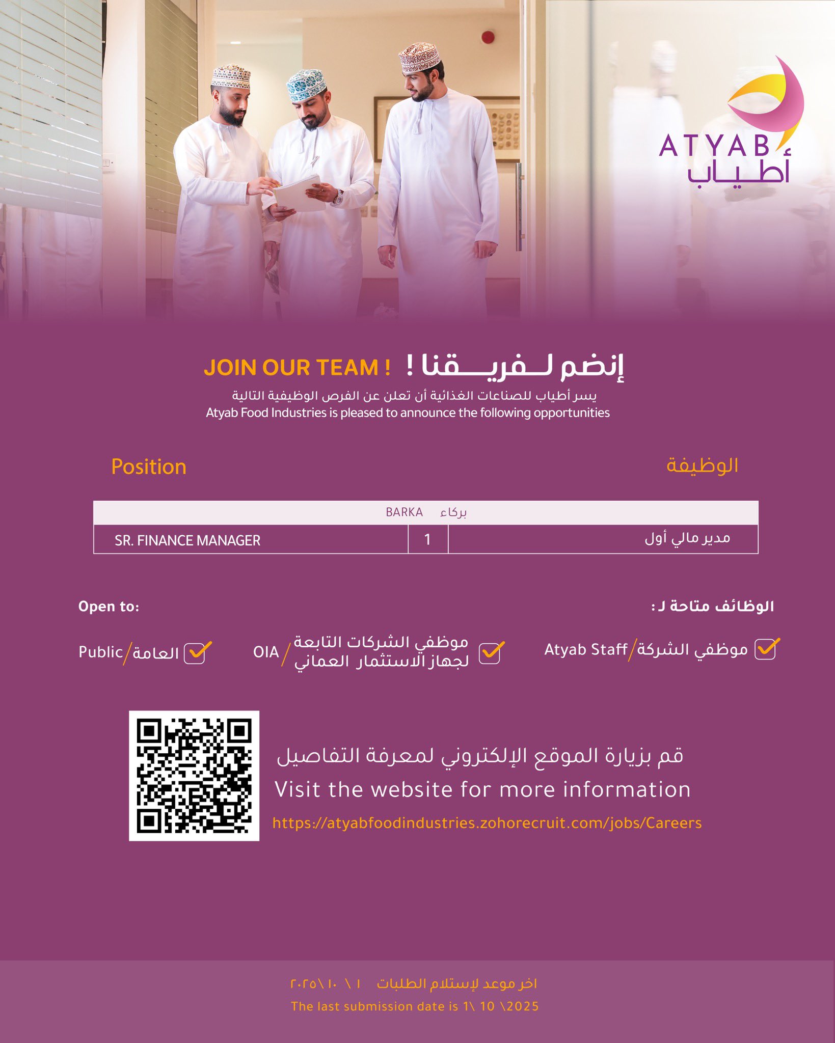 شركة أطياب للصناعات الغذائية - وظيفة شاغرة ( مدير مالي أول )