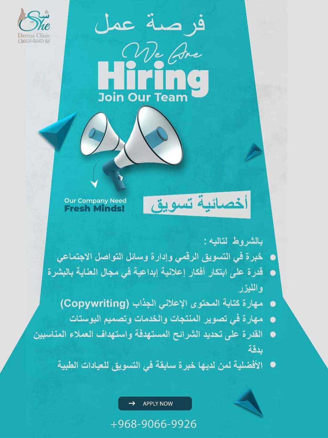عيادة شي كلينك في مسقط - وظيفة شاغرة ( أخصائية تسويق )