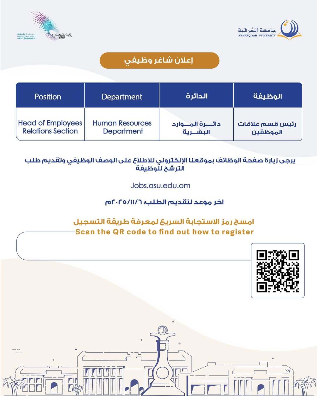 جامعة الشرقية - وظيفة شاغرة ( رئيس قسم علاقات الموظفين )