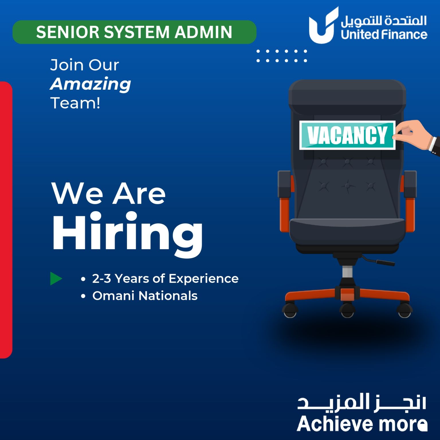 الشركة المتحدة للتمويل - وظيفة شاغرة ( SENIOR SYSTEM ADMIN )