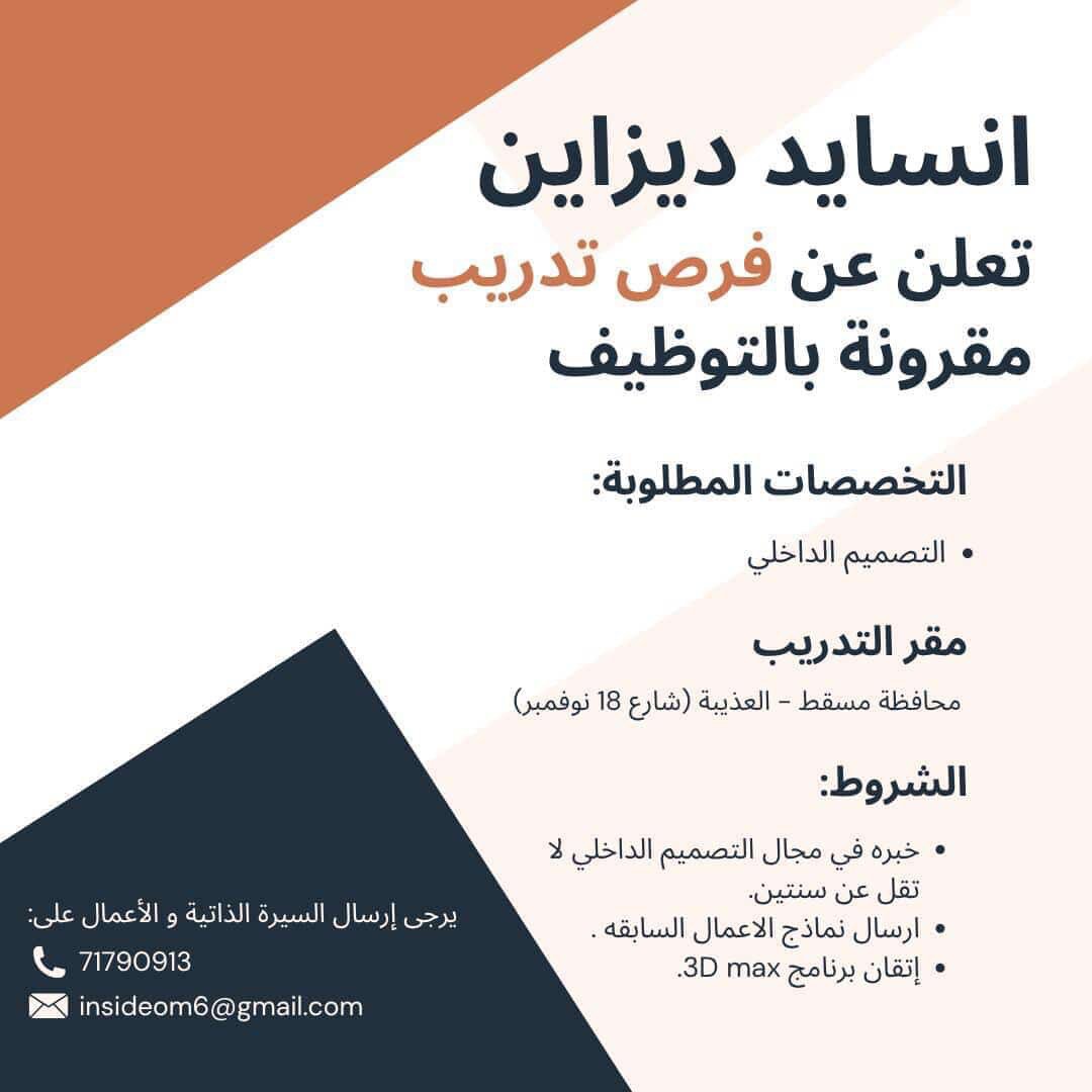 شركة انسايد ديزاين - تعلن عن فرص تدريب مقرونة بالتوظيف ( التصميم الداخلي )