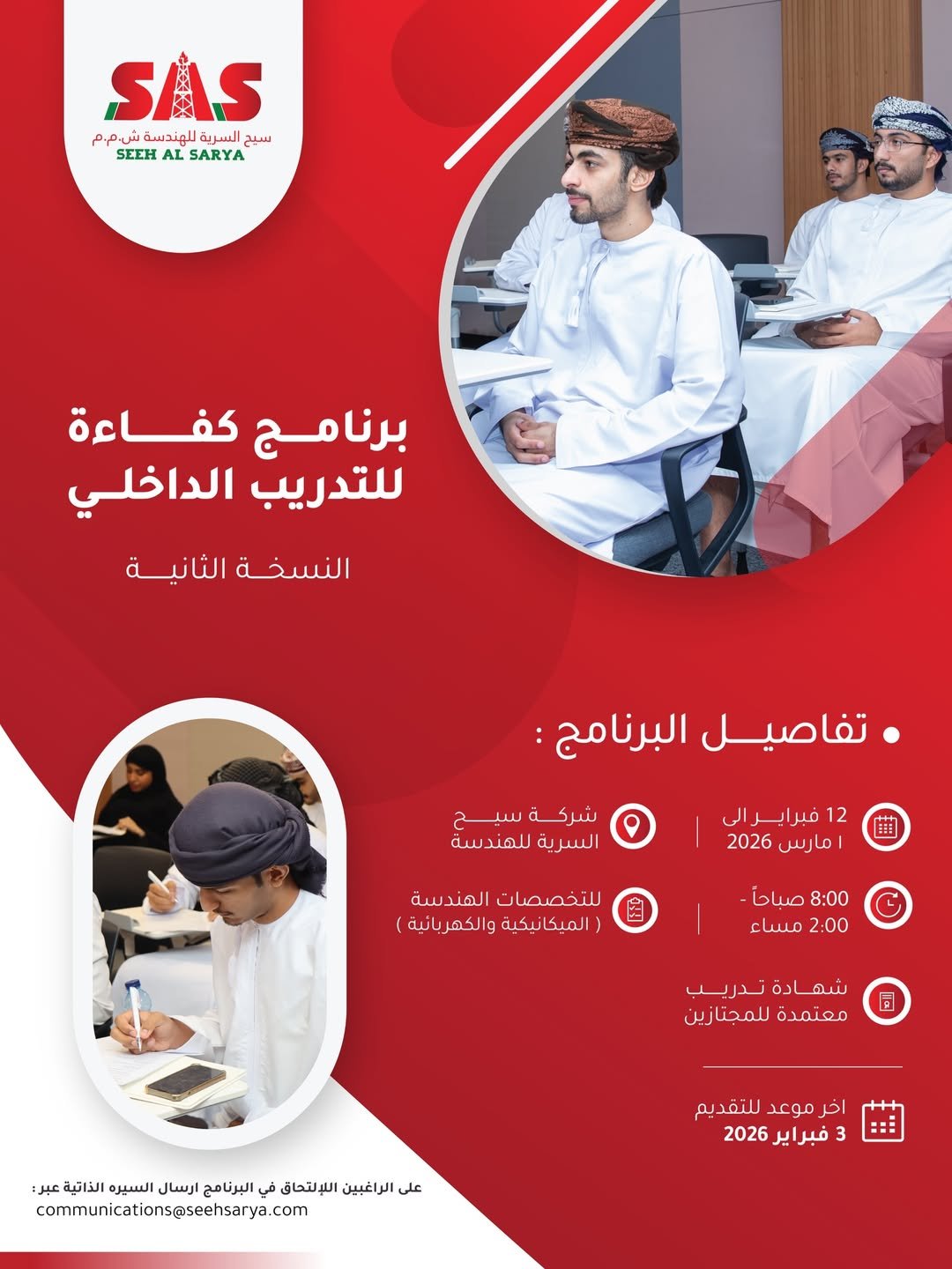 شركة سيح السرية للهندسة - يوفر برنامج التدريب الداخلي في تخصصصات الكهربائية والميكانيكية )