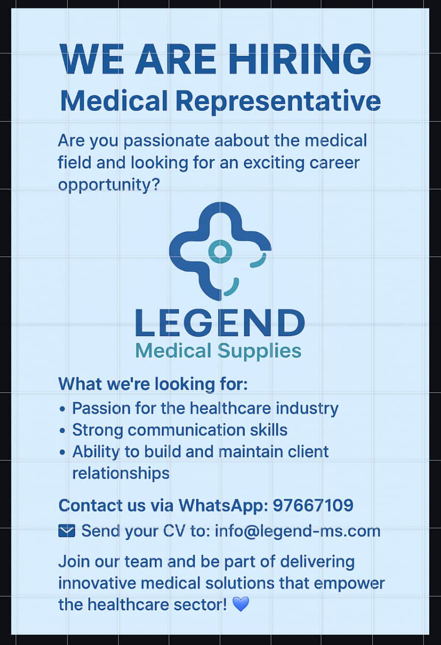 ليجند للتجهيزات الطبية - وظيفة شاغرة ( Medical Representative )