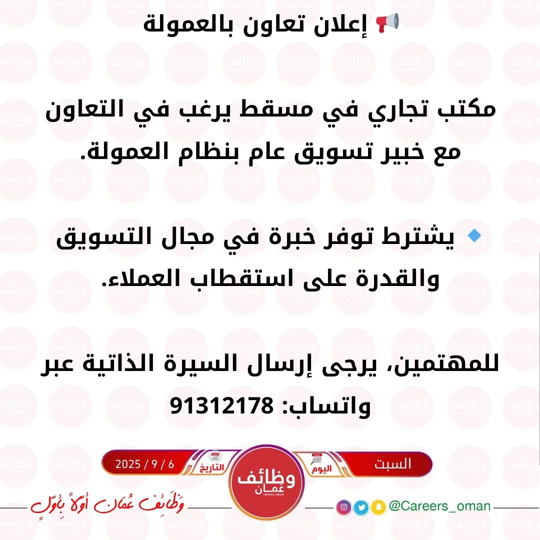 مكتب تجاري في مسقط - وظيفة شاغرة بنظام العمولة ( خبير تسويق عام )